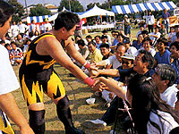 NEC相模原工場のイベント「スポーツフェスティバル」の会場にリングを作り、プロレスを初めて見る人のために長与が実演を交えてルールを説明。その後、試合を行ないました。