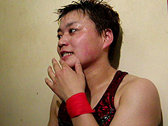防衛戦ですか?…今日一期生同士で闘ったんですけど…、シュガー佐藤に興味があります。前は同じ体型ぐらいだったんですけど、あたしが10kgぐらい絞ったんですけど、向こう(佐藤)は10kgぐらいアップしてきて、復帰してきた後に、シュガー佐藤の身体をみたら、やったら面白そうだなと。