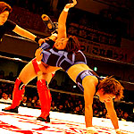 In the first fight, championship candidates, Satomura and Hamada happened to beat Amano and Sugar. And also a new fighter to GAEA, RAN, beat Uematsu. In the first fight of the semi finals, Sugar beat Amano, and an ex-AAAW single champion, Nagashima was beaten by RAN. It was incredible!! In the semi final match, Nagayo and Kansai and Yamada fought with Toyota and Asuka and Aja. Asuka, who joined MOTOZEN at Yokohama Mega Ride on October 20th, and Nagayo vs Toyota for the first time in 4 years had attracted public attention. In the end of this fight, Yamada had a leading role. She got a pin on her rival, Toyota, and she appealed to challenge for the AAAW single championship.