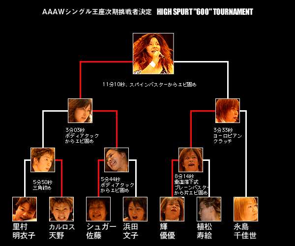 In the final, Sugar and RAN fought an even match. At last Sugar got a pin on RAN. She became a winner. After the fight, she did a mic appeal to challenge for the AAAW single championship also, so that the new conflict was born between her and Yamada.
