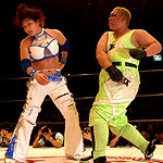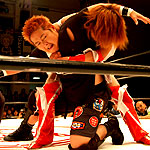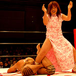 In the third match, a male wrestler, Tsubo Genjin fought with Hirota in a mixed match. Tsubo Genjin got a pin over Hirota.