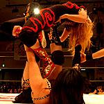 During the term of D-FIX's penalty, KAORU fought with Kansai, and Ozaki fought with Toyota. They were refused weapon, against the rule, a second,but KAORU got a pin over Kansai and also Ozaki got a pin over the singles