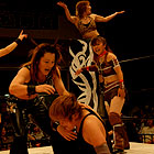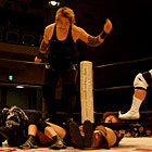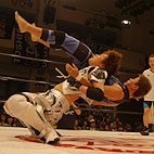 その衝撃音に場内がどよめくが、デビルはすぐさまパワーボムで返礼。Hikaruがデビルにバックフリップ、林が長与にタックルと、若い2人が会場を沸かせ