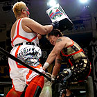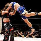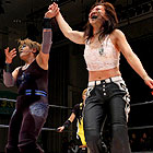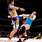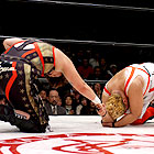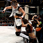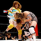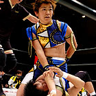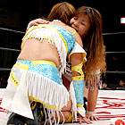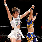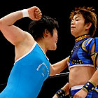 The first match of a double main event: This match was the final single match between Nagayo & Aja. Both of them didn't think of winning by pinhold. Nagayo concentrated her attack to one point on Aja's right elbow and Aja concentrated her attack to one point on Nagayo's left knee. After 10 minutes, both of them were staggering due to heavy damage. Aja gave Nagayo a backhand blow three times and then Nagayo hit Aja's face with her kicks three times. But they still didn't go down. At last, Aja gave Nagayo a backhand drop as she fell down to the front. She went on all fours and put her hand on Nagayo who was sprawled on her spine. So that she got a pin over Nagayo. There was a blank time before Aja got a pin over Nagayo but Nagayo couldn't get it back within three counts. During the match, they tried to get a pin by finishing time only. After the match, Nagayo asked Aja to shake hands while keep looking down. Aja took the advantage off and shook hands. And then Aja looked up and raised her hand in front of Nagayo and kneeled down.