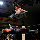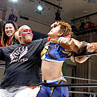 The third match: Hirota fought with Jaguar Yokota who has proudly the longest career in the history of Japanese female pro wrestling industry. Hirota appeared with Jaguar's husband. But her attitude aroused Jaguar's anger. That caused Hirota to lose.