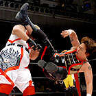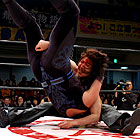 Mizumura couldn't compete with Amano during the match. And was finally over whelmed by Amano's triangle arm bar from the top position.