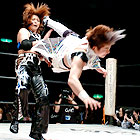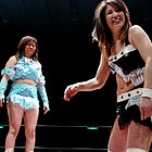 THE FIRST MATCH: The beginning of this match started slowly. Jaguar attacked Mizumura, who only has a very short career, by basic technique. Around the middle of the match Mizumura tried to get a pin over Jaguar. When Jaguar tried to escape, Mizumura got her back to the center of the ring. Also Nagayo & Aska, who were corner men for Mizumura, pulled the rope to not let Jaguar escape. And when Jaguar caught Mizumura, they pushed the rope to help her.