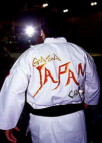 Nagayo back to her hometown Omura. Lots of her friend and relative came see her great fighting. She put on Ryukyu Karate dougi and she won in her home town.
