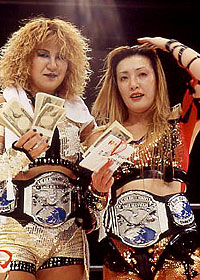 Hokuto & Ozaki won Tag champion ship title match. It was the finals of the year. They got 30,000$ and champion belt. But dark side CRUSH'S " ZERO & ZONE" entered after the title match immediately, for a while the floor was thrown into an uproar. They kidnapped Police and soon disappeared. KAORU first single won from Nagayo. She requested to fight with Aska.